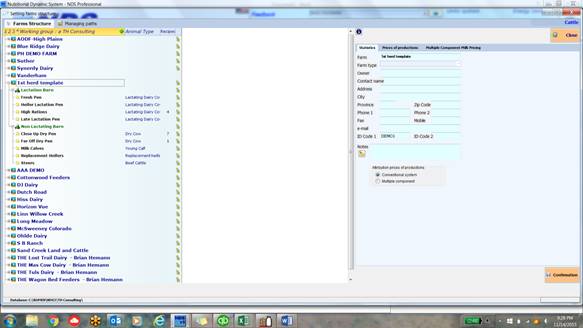 Finding the Recipe and in this case we will use DEMO High PM AG and which we know is in the 1st Herd Template Farm and is in the High Ration Pen. Click on the Pen, the ration is in and you will see the pop up box and Recipe List is in that list