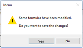 This will also check if the saved formulas match the current ones in the list box; if there are differences, a message box will ask if it is necessary to update the saved formulas.